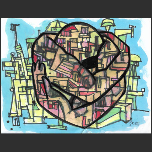 242 – Noyau repliéMédium mixte sur papier, série « Hiver 2026 » 8.5" x 11", julien rousseau, 2026
