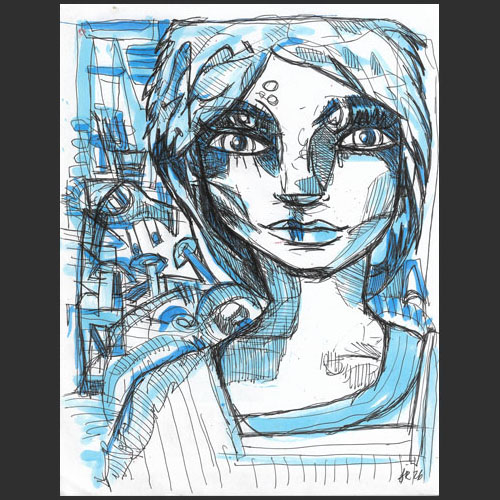 Le noir du trait garde la figure droite, présente, lumineuse