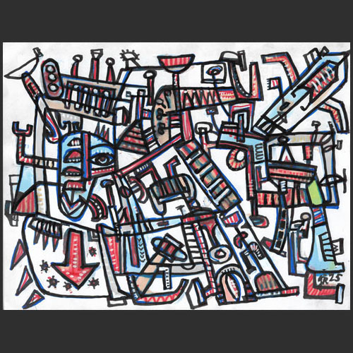 Les diagonales, les escaliers, les blocs et les signes créent une belle sensation de chantier mental
