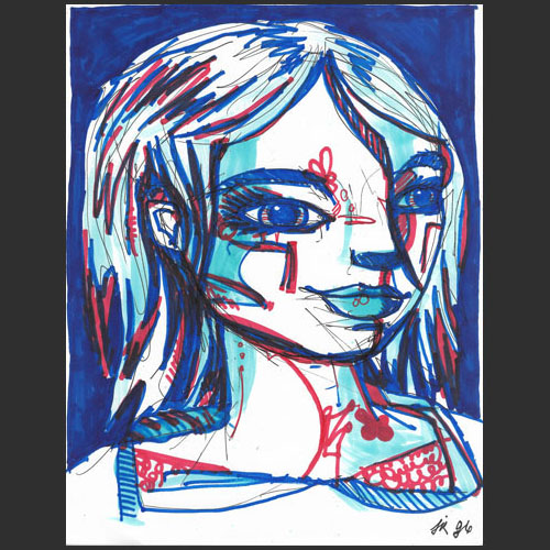 Portrait fonctionne ici sur une partition très contrastée entre bleu, rouge et blanc