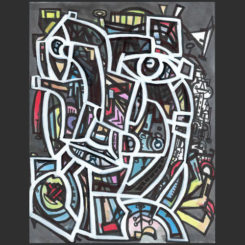 Les formes paraissent enchâssées dans une grille souple, comme si l’image révélait sa propre charpente